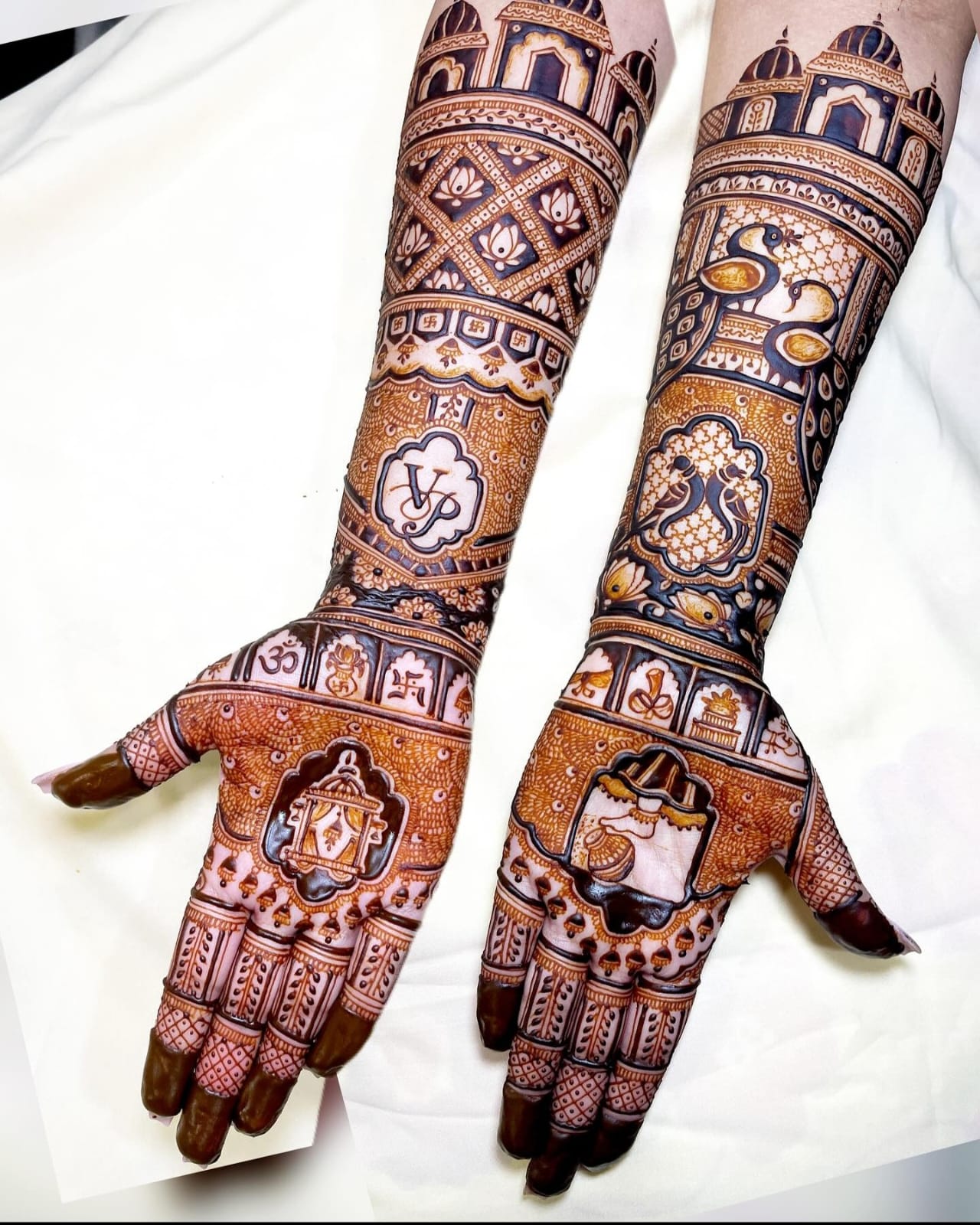 Professional Mehendi with latest designs like dulha-dulhan figures, animal figures and portraits are our forte.